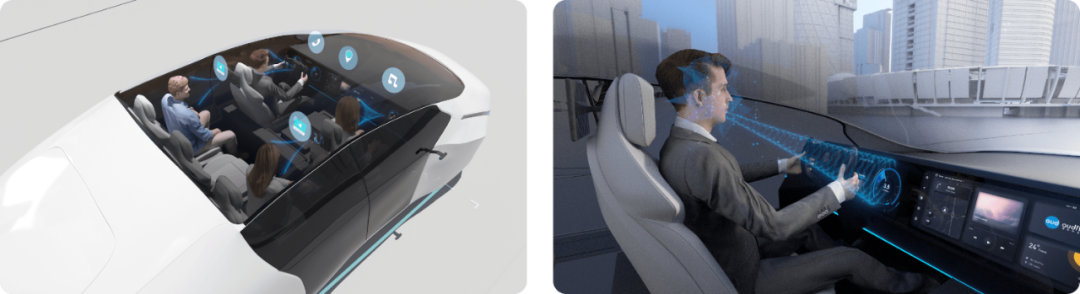 清听声学研创的智能座舱Focusound Screen™声场体验,巧妙地利用智能座舱中已有的大屏,并利用自研的多音区Multiple Sound Zone技术,直接通过屏幕给驾驶员创造独立的专属声场,将导航信息、车载电话、提示音等声音清晰地传递给驾驶员而不对其他位置的乘客造成干扰,同时还能精确再现声音的空间方位。前排及后排乘员也能个性化定义音频,拥有个人私密音区,解决出行途中通话/会议隐私保护、个性化音频等需求,帮助用户更安全、更舒适、更有乐趣地出行。