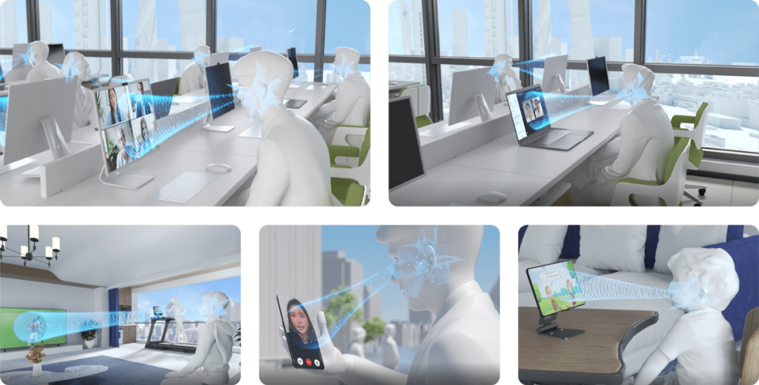如今,折叠轻薄、可变形的柔韧显示屏已成为显示面板市场的一大流行趋势,但目前仍面临的挑战是如何在可折叠、轻薄的显示屏上放置音响?如何让整个显示屏成为音响?集成Focusound Screen™利用屏幕本身作为发声单元,营造超越整个屏幕的全域音效,实现“音画合一”,提供360°全环绕沉浸式音效体验,可广泛应用于笔记本电脑、电竞显示、会议系统等,私域声场和空间音效的打造,赋予显示产品基于终端场景的创新价值,给用户带来视听一体的极致体验,从场景痛点出发,让视听体验更个性化、智能化、隐私化。
