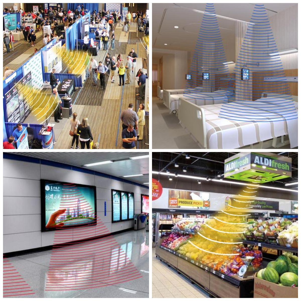 定向扬声设备在各类场景中广泛应用,如展厅、银行、学校、酒店、图书馆、电子显示屏、家居、商场超市等都可以使用。