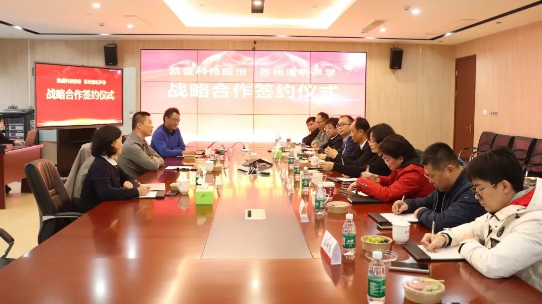 为进一步提升产品竞争力,促进双方长远共进,12月4日,苏州清听声学科技有限公司与凯盛科技股份限公司签署战略合作协议,双方达成战略合作关系。凯盛科技股份有限公司党委书记、董事长夏宁,党委副书记、总经理孙蕾等领导一行,清听声学董事长栗振等出席签约仪式。
