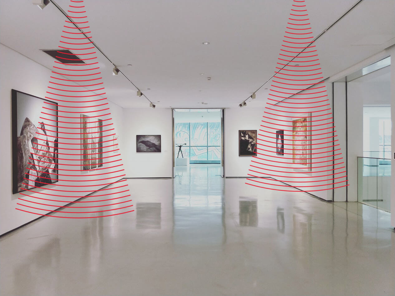 比如,在展览展示等场所的不同展示展览区域安装使用多台定向扬声器,形成一个一个独立的音频区域,可以解决不同展示区域语音讲解内容互相干扰的问题。