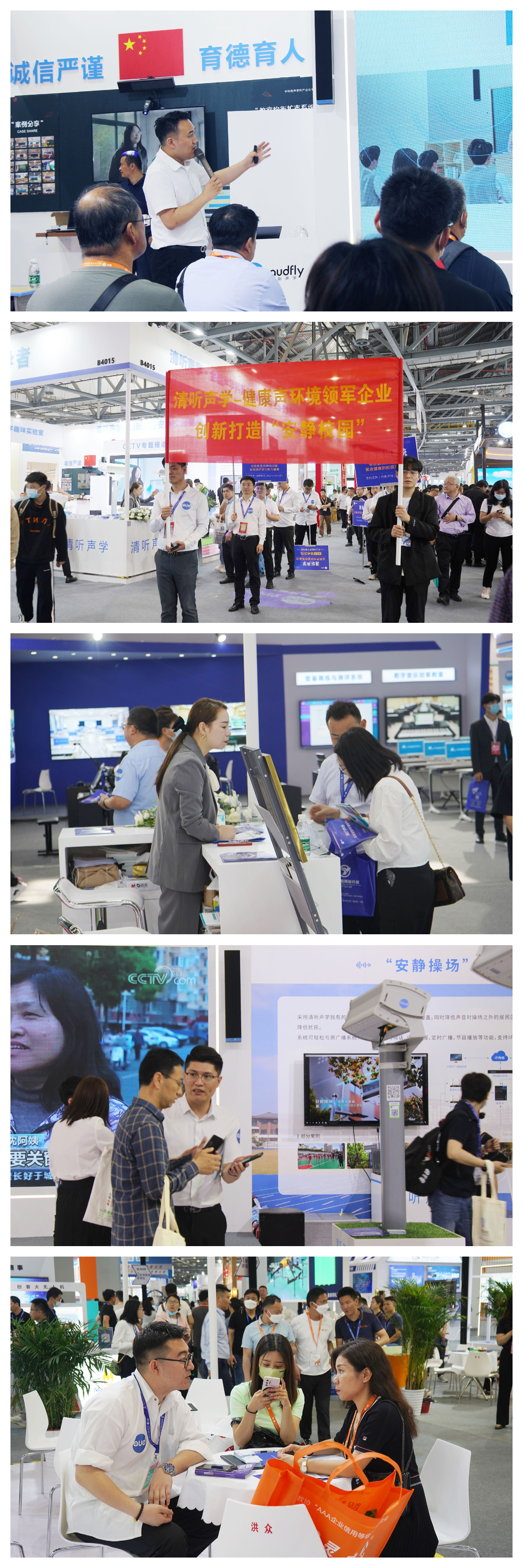 此次清听声学的展品通过“安静校园”校园健康声环境综合解决方案,展现了声学技术在校园内创建柔和声环境、保护学生听力、解除社区与校园声矛盾等多维场景的创新突破,一经亮相便吸引了众多观展嘉宾驻足体验,成为会场内亮丽的风景线。