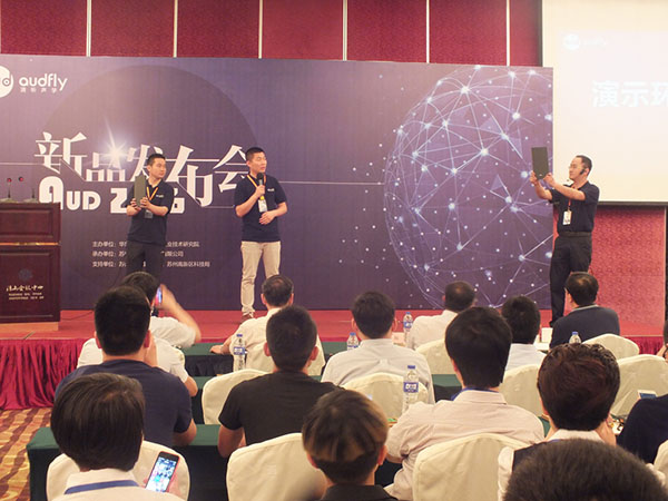 在发布会现场,清听声学科技有限公司创始人栗振特别带上聚音宝,给大家做了产品演示,让大家可以更加深入清晰的了解聚音宝这款产品。